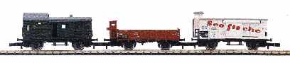 zwei offene Güterwagen, Post-LKW mit Anhänger (5000 Stk. Auflage).